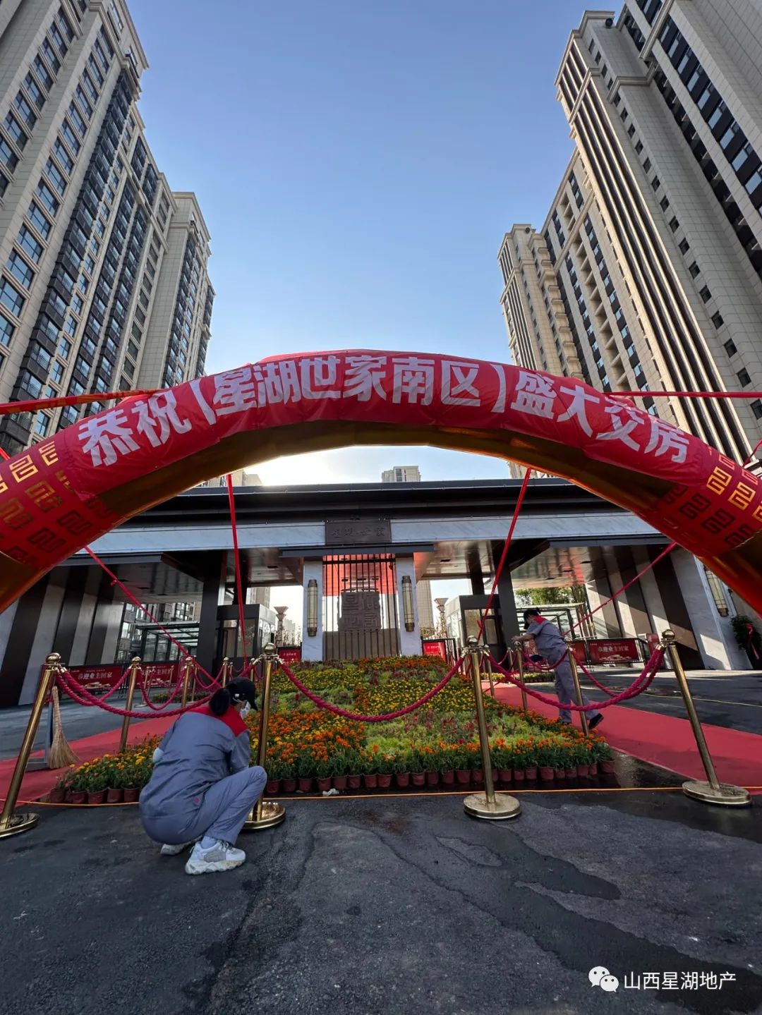 交房期间,工作人员全员早早到位,为交房全力以赴,为业主营造了温暖贴心的归家仪式感。从大门到楼栋,一眼望去,焕然一新,空飘、背景墙、指示牌等每一处都体现了星湖地产对此次活动的重视,隆重而贴心的交房氛围,让业主真切感受到了精细入微的服务。